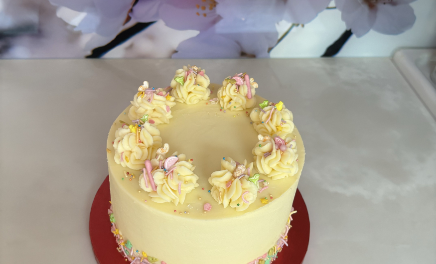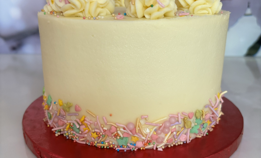 This course is all about achieving that perfect finish on your buttercream. You will split and layer your cake (focusing on the precision so your cake is beautifully level); you will flat ice the top, use ganache plates, apply buttercream around the sides and then finish with ruffle piping and sprinkles.