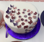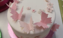 Over the two consecutive weeks you will bake a round Madeira cake and then split fill and ice it to achieve a smooth professional finish. Working with flower paste you will make dainty blossom flowers and pretty butterflies to decorate your cake. You will complete the design with a ribbon & bow at the base of your cake.