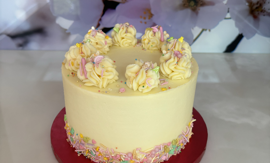 This course is all about achieving that perfect finish on your buttercream. You will split and layer your cake (focusing on the precision so your cake is beautifully level); you will flat ice the top, use ganache plates, apply buttercream around the sides and then finish with ruffle piping and sprinkles.