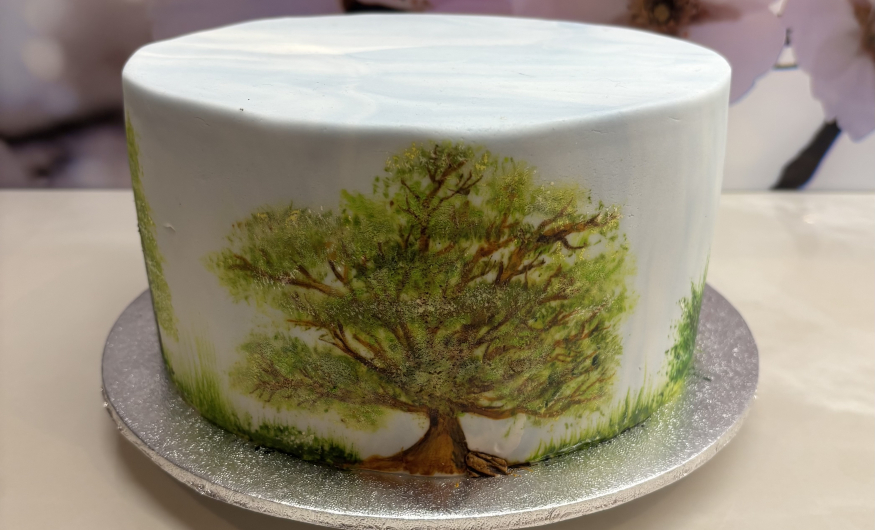 You don't need to be artistic to be able to create beautiful painted designs onto fondant. Under the guidance of an expert tutor, you will be amazed at what you can achieve. In advance we will ice a dummy cake in white fondant for you. During the day you will begin by airbrushing a variety of background scenes - sky, hills etc. Moving on you will paint a selection of tree/ countryside scenes.