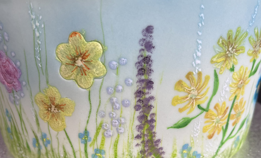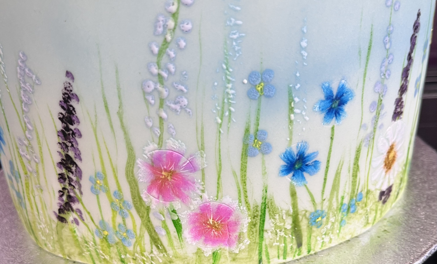 You don't need to be artistic to be able to create beautiful painted designs onto fondant. Under the guidance of an expert tutor, you will be amazed at what you can achieve. In advance we will ice a dummy cake in white fondant for you. During the day you will begin by airbrushing a variety of background scenes - sky, hills etc. Moving on you will paint a selection of floral designs.