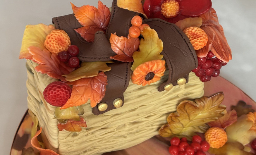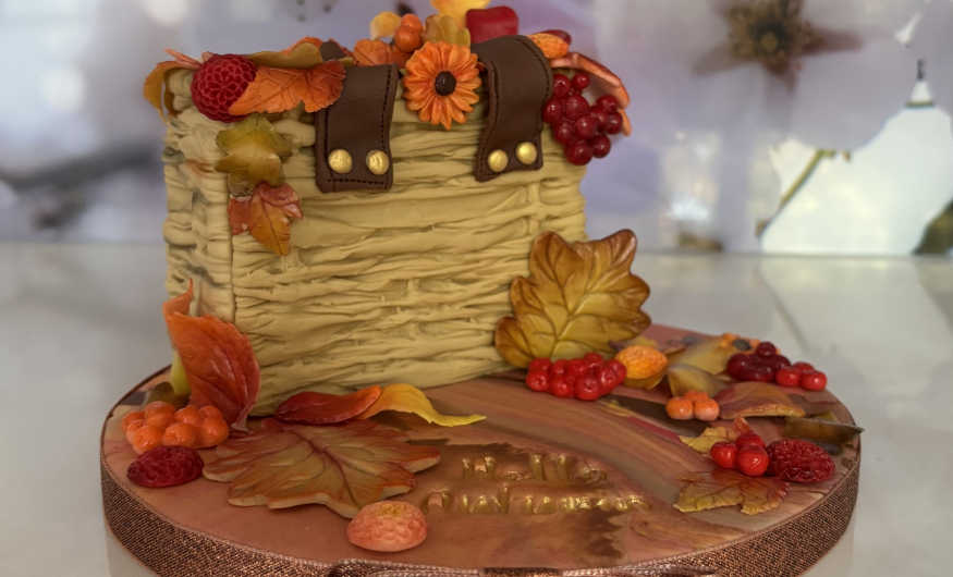 Learn an incredible array of skills whilst making this gorgeous rustic wicker bag cake with autumnal eaves, flowers and berries. You really will be amazed at just how many different techniques are packed into one cake! Everything is taught step by step so whether you are a complete beginner or a more experienced decorator this class will work for you.